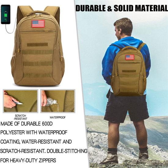 Der Militärrucksack ist robust, leicht, langlebig und wasserdicht und verfügt über reißfeste Eigenschaften, sodass er sich perfekt für jedes Abenteuer eignet. Der Rucksack besteht aus hochwertigen Materialien, die rauen Umgebungen und starker Beanspruchung standhalten.