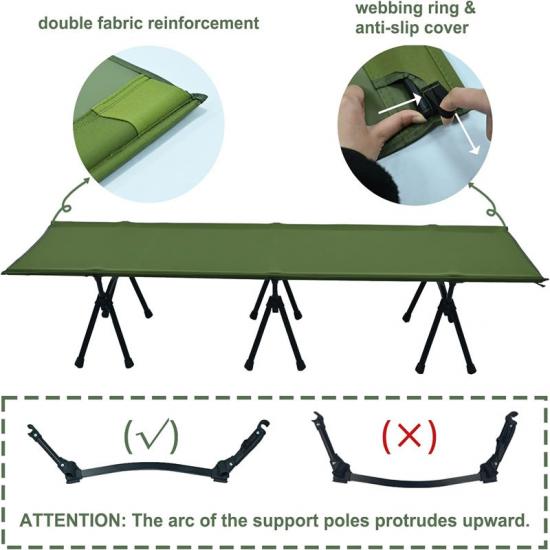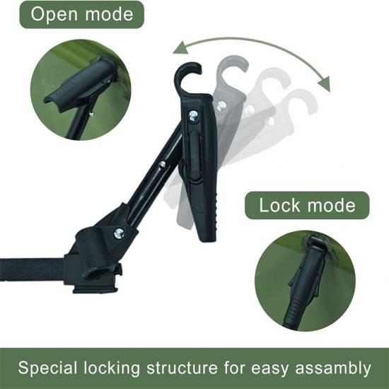 Das Verriegelungssystem der Stützbeine des Super Cheap Provide Relief High Quality Klappbetts vereinfacht den Auf- und Abbau ohne den Einsatz von Werkzeug. Bitte beachten Sie jedoch, dass der Stoff etwas straff sein kann, um ausreichend Halt zu gewährleisten.