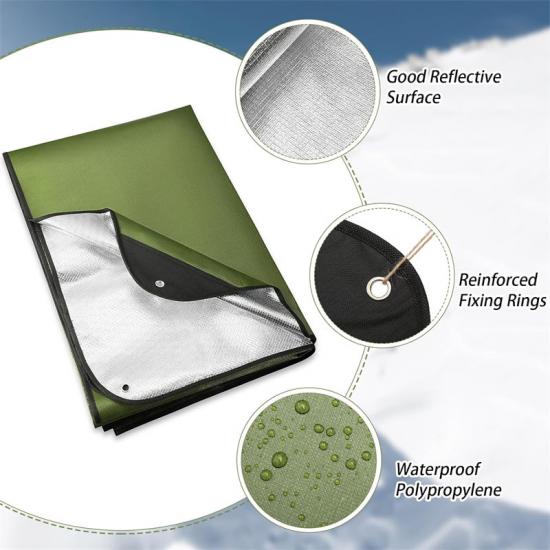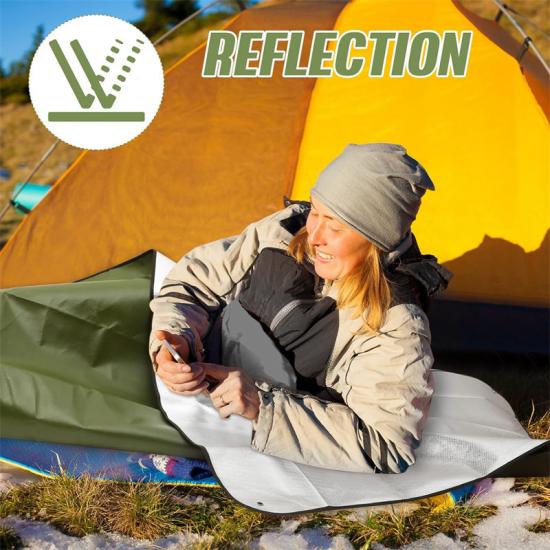 Unsere olivgrüne Notfallplane besteht aus hochwertigem PE-Material, das wärmeisolierend, ultradünn,