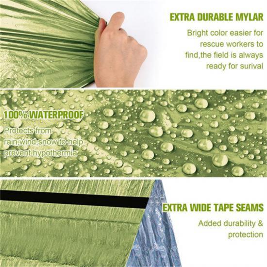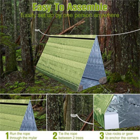 Unser aus hochwertigem PE-Material gefertigtes Notfallzelt eignet sich für Outdoor-Aktivitäten und ist leicht und tragbar.