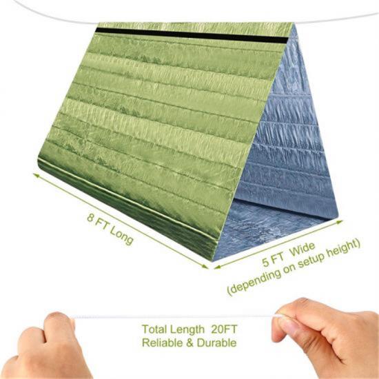 Das robuste und langlebige Zelt mit Rettungsleine misst im aufgeklappten Zustand ca. 150 x 240 cm/5 x 8 ft. und ist kompakt und leicht zu tragen, wenn gefaltet. Der Stoff des Zeltes ist wasser- und winddicht, um Sie warm zu halten und Leben unter extremen Bedingungen und bieten das ganze Jahr über Notfallschutz.