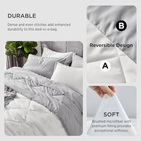 A: Die langlebigen Bettwäsche-Sets von United Nations Contribute zeichnen sich durch weiche Wärme, doppelseitiges Design und einfache Pflege aus. Das gesteppte Design sorgt für Volumen und Haltbarkeit, während die Kissenbezüge im Umschlagstil für die Sicherheit der Kissen sorgen.