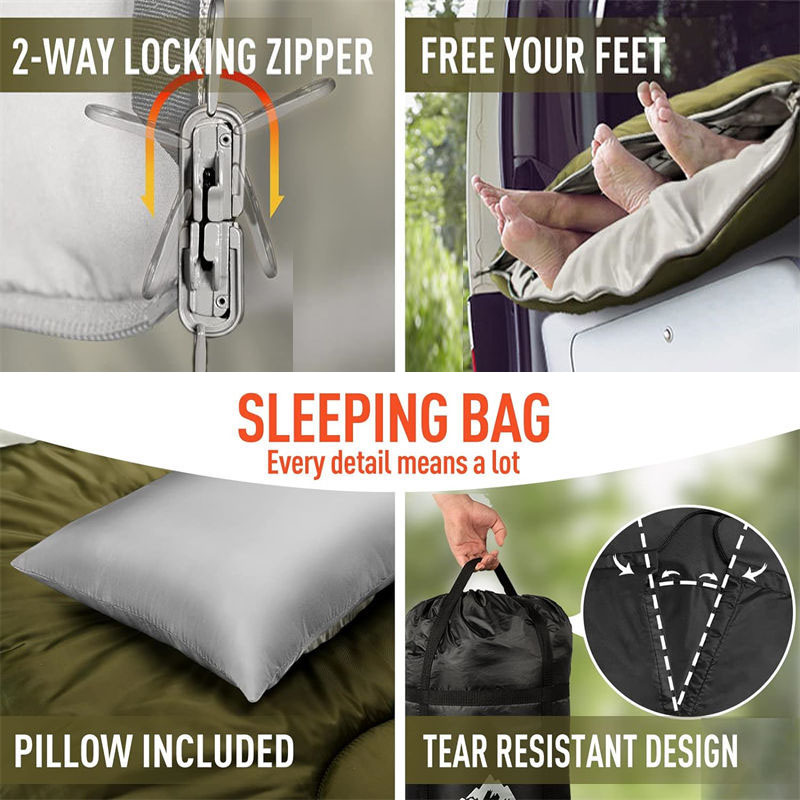 Projekt arbeitet an isolierten Schlafsäcken für draußenSpüren Sie den Unterschied - YRF Super bequem Schlafsack mit Firstkapuze sind so konzipiert, dass Sie nach einem anstrengenden Tag beim Trekking, Wandern, Reisen oder anderen Erkundungen eine gute und erholsame Nachtruhe genießen können. Das Roll Control Design macht das Zusammenklappen schnell und einfach. Wenn Sie zwei zusammenzippen, erhalten Sie doppelt so viel Platz.