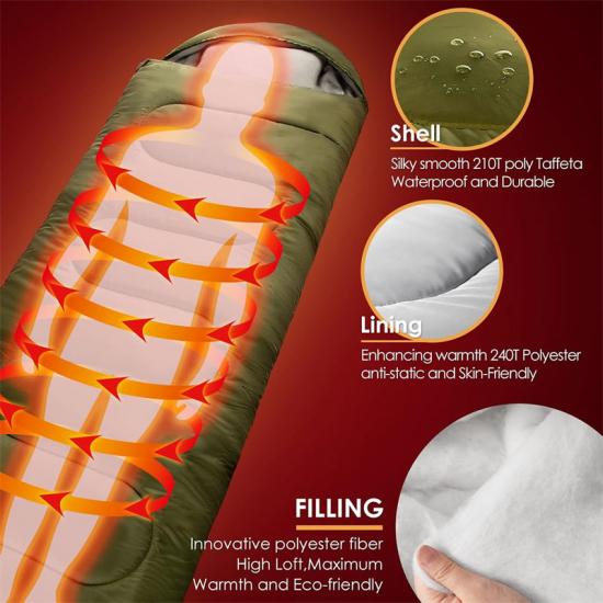 Isolierte Militärschlafsäcke passen sich einer Vielzahl von Umgebungen und Bedingungen an und bieten ausreichenden Schutz und Komfort.