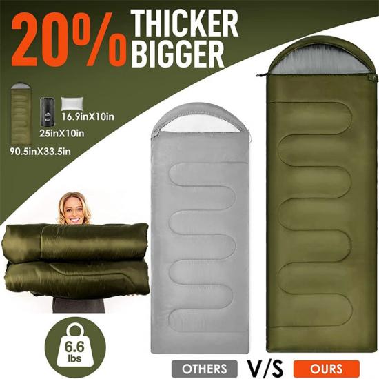 Der große Warm Flood Relief-Schlafsack mit den Maßen 90,6 x 33,5 Zoll ist dick und groß genug, um nur 6,6 Pfund zu wiegen. Das weiche 210T-Polyesterfutter und die minimale Geräuschentwicklung bieten dem Benutzer die beste Schlafumgebung.