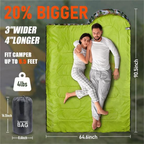 Mit den Maßen 230 x 85 cm ist dieser tragbare Flüchtlingsschlafsack dick und groß genug, um nur 3 kg zu wiegen. Die beiden Einzelschlafsäcke sind geräumig und komfortabel und verfügen über zwei 183 x 55 cm große Memory-Schaum-Isomatten für ein warmes und komfortables Schlaferlebnis. Der tragbare Flüchtlingsschlafsack wird mit einem Kompressionssack geliefert, und die Schaumstoff-Isomatten sind mit zwei elastischen Bändern ausgestattet, die komprimierbar und leicht zu verstauen und zu tragen sind.