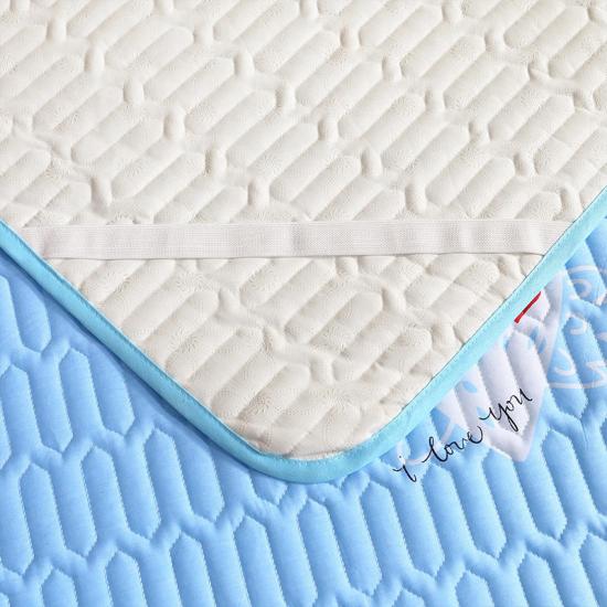 Die TPU-Rückseite schützt Ihre Matratze vor Unfällen mit Flüssigkeiten wie verschütteten Flüssigkeiten, Urin, Schweiß und Schweiß. Außerdem ist es atmungsaktiv, sodass Wärme und Feuchtigkeit durchdringen können.